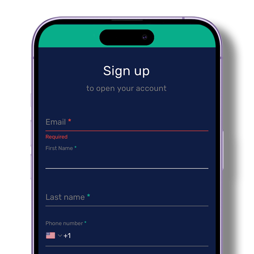 Develop your skills through our demo account with virtual funds up to $10,000 or Start trading through your very own live account